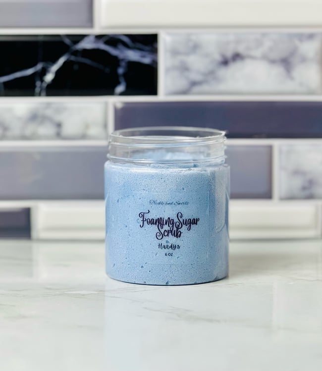 Indulge in luxury with our foaming sugar scrub, meticulously crafted from a whipped soap base, premium granulated sugar, and infused with phthalate-free fragrance oil. Immerse yourself in the invigorating scent, reminiscent of the iconic Ed Hardy perfume for men. Elevate your skincare routine with our decadent scrub, leaving your skin irresistibly soft, smooth, and subtly fragrant. Explore the ultimate blend of exfoliation and cleansing, perfectly tailored to pamper your skin."